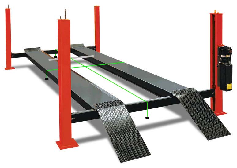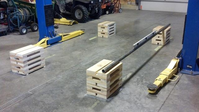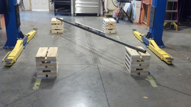 Start in the front. A simple way to do this is to pull a taut string behind the front tires, on the floor, and mark the string location on both sides. Do the same in the front. Split the difference & that is the front axle centerline. Problems only occur with this method with different tires, different pressures, suspension or tire bind from not rolling it into place straight.