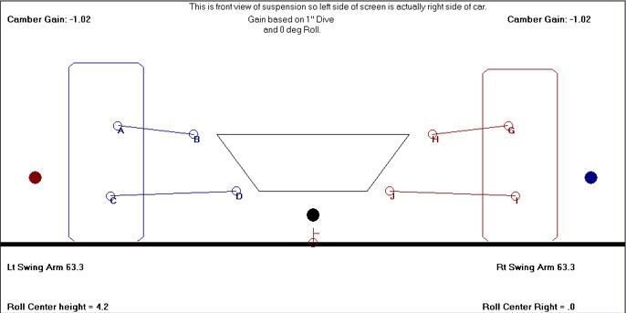 • For example, if you lower the whole car ½" ... all of your frame mounted pivots just went down ½" ... and your ball joints did not. That is easy to change in the Roll Center programs & know what your geometry is then.