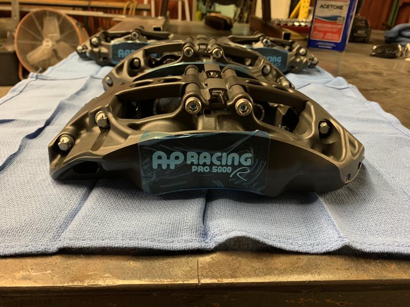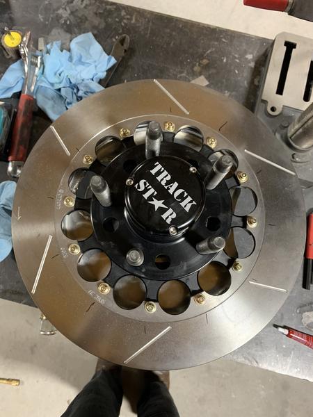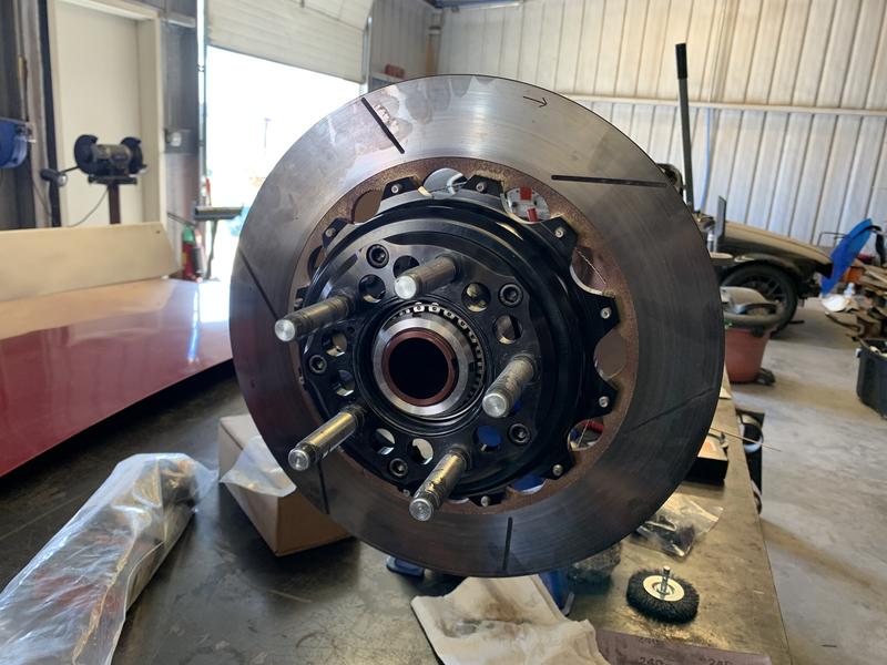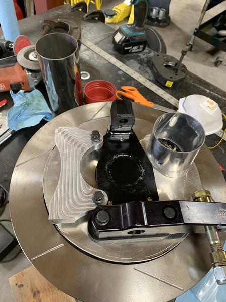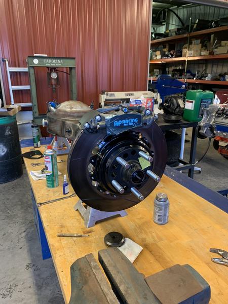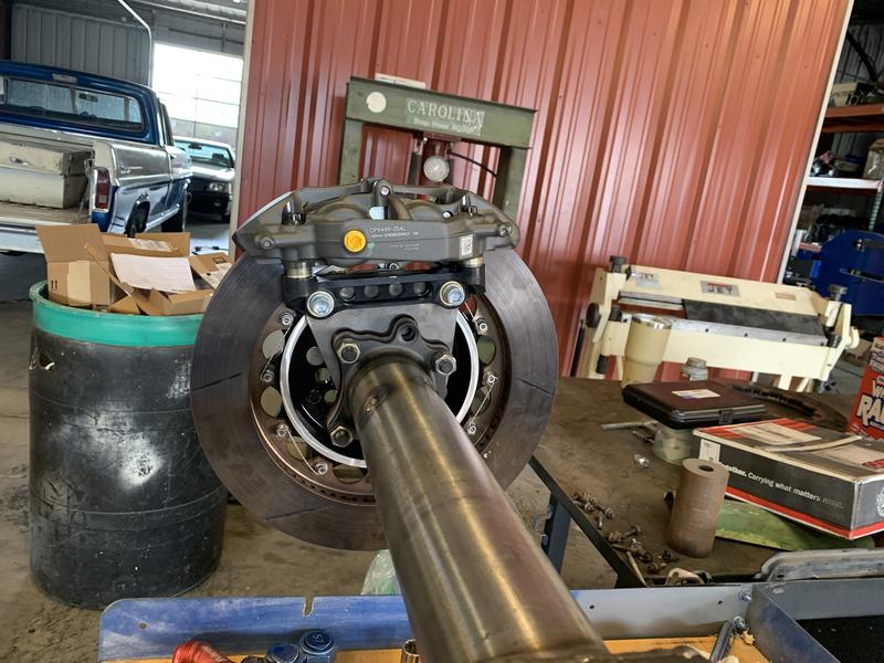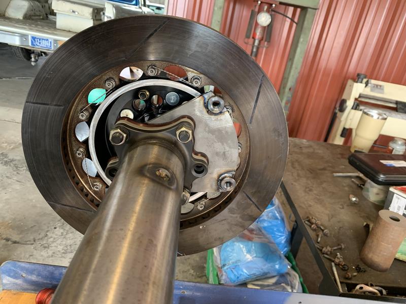 The rear rotors stayed a 14", which is probably too big, but if you look at the calipers installed, I built the brackets with spacers that can be removed to accommodate a smaller rotor without remaking the brackets.