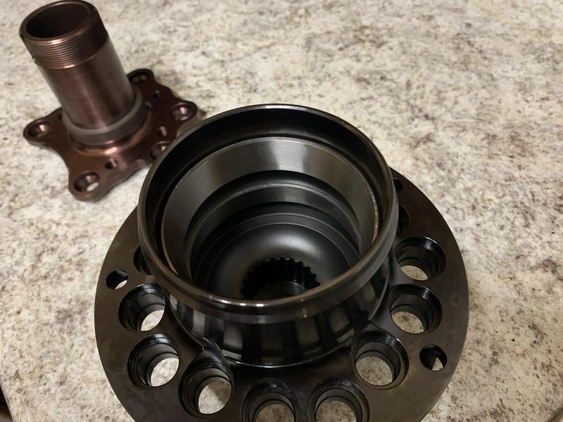 The Strange setup uses a crowned spline axle and a pair of large tapered roller bearings, similar to our friends in NASCAR. There is another setup offered by those crazy Aussie's used in V8 Supercar that incorporates more of a CV joint at the outer end of the axle. Friend of mine bought that setup and is currently installing it. Guilt trips have yet to get him on here.