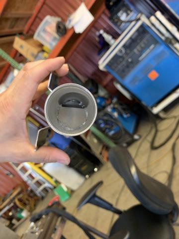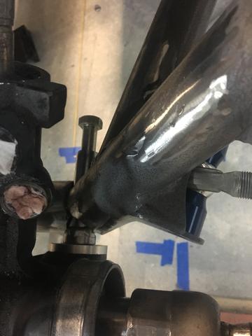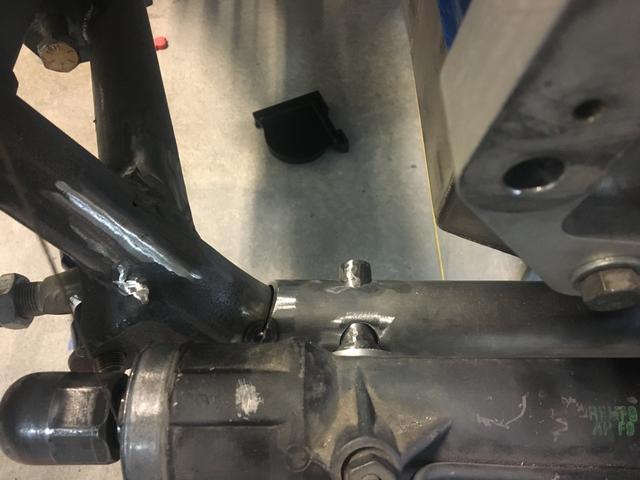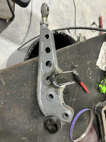 Little pocket from a piece of 1-3/4 tube and she fits! I was a little concerned about rigidity from the control arm after the change, so I opened up the lightening hole behind the pocket and welded in a piece of .120 wall tube.