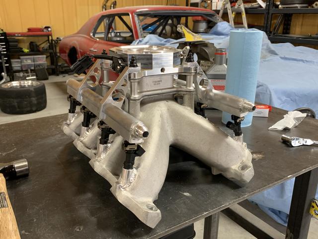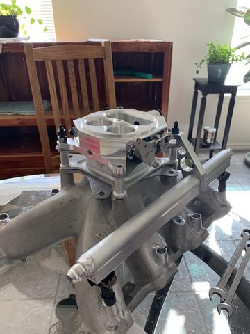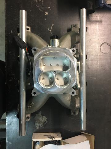 Turned out great! Sourced some Injector bungs from Ross Machine Racing, and found a decent flowing throttle body from Accel. Throttle bodies were kind of limiting when I started this. Today there are so many options. At the time I started this there were far fewer offerings for a 4150 flange didn't flow much. The 3-blade Accel I found that was new but discontinued, flowed 1350CFM. Wilson may have been around there somewhere with their 4-barrel and fancy spacer claiming 1400-somthing, but I either didn't know about them or they were too expensive, and FAST, Accufab, and Holley were still a couple hundred CFM behind. Fast forward to dyno day, and I could use a little larger TB but the gains (6-10hp) aren't worth the $1000 it would take to get them.