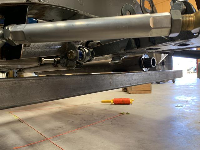 That 2x3 tube is clamped to the bottom of my frame - keeping some adjustment in the end links and staying within 1" difference front to rear at ride height, there's just enough room for an 1/8" aluminum plate behind the splitter blade.