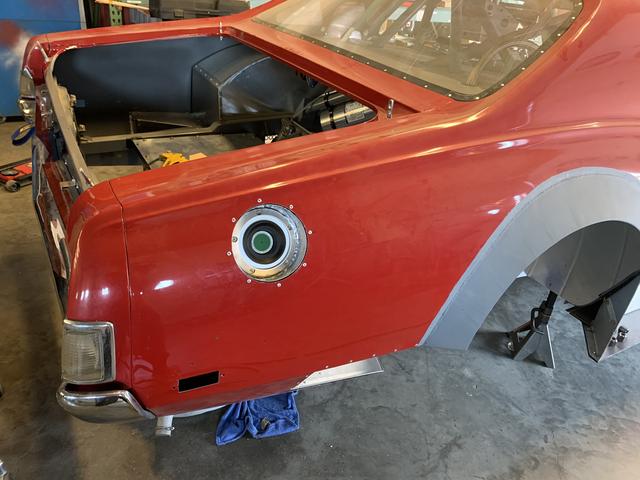 To the install! Shrank, and stretched, and welded a bezel to rivet to the inside of the qtr panel and hold the female for the dry break. You'll see this is quite a fast forward with the other work around it being done, but I thought maybe posting an entire system from start to finish could be easier and more linear than starting it here and finishing it later in the thread.