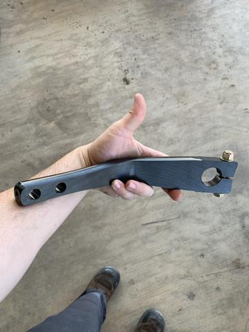Lets start with the front bar though, it had more challenges. My suspension ended up being a medium travel setup with travel around 2-1/4" in dive to start. Not a ton of travel so it didn't require the really long arms necessitating a huge bar to start. Ron hooked me up with a step-up 1-1/4 to 1-3/8 setup with needle bearings. The step up bar and tube give me a lot of room for growth. Smoother movement of the bar and lower maintenance requirements was a no brainer vs the cost increase for the bearing over a bushing.