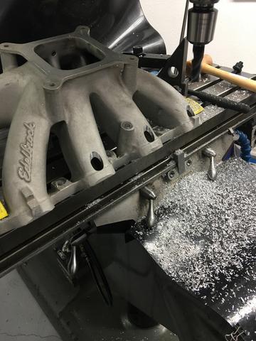The manifold that came with my Busch series engine wasn't something I wanted to just replace with any EFI manifold due to the hours and money spent developing it, that I could never hope to surpass. With that knowledge it was down to converting. Talked to the guys at GSpeed - a local corvette race shop with some machining capabilities about milling the intake for injector bungs and here's what they were able to do for me.
