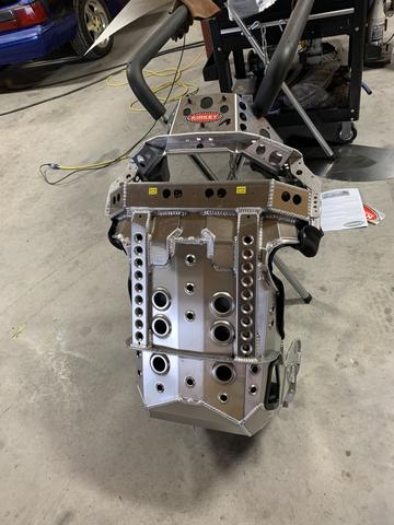 Near the rear bulkhead I did a mounted bulkhead block. Bulkheads are welded to a removable piece that continues the hardline for fuel and brakes, but changes to soft for oil feed and return.
