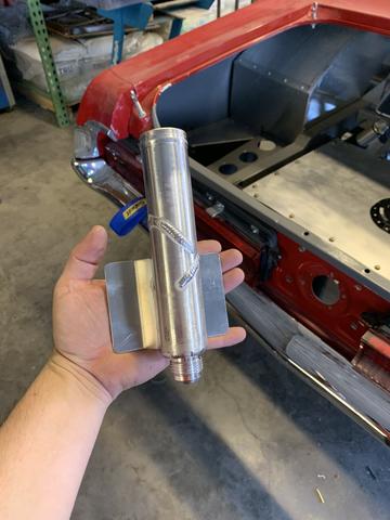 Did a little looking around and dry break stuff is a rabbit hole of money and components not exactly setup to work together without the aforementioned money in large quantities. Until I looked at Radium Engineering. They offer their universal Fuel Cell Surge Tank (FCST). Mine is an early version that I got new for a great deal from Scot at Scot Rods Garage, as well as dry breaks and a discriminator valve that plugs right into their FCST. Its a smaller fill pipe at 1.5" compared to the 2"+ that the big boys use but it still fills fast! If you're unfamiliar with a discriminator valve, it can be a 2 in 1 kinda thing or just a filling shutoff. In the Radium setup, a larger -12 vent that serves the purpose of rollover shutoff for the vent as well as closing the vent when the cell is full to stop filling. Combined with the dry break its awesome. Filling stops when its full, pull the can out, and little to no spillage. In other systems, the discriminator doesn't always double as rollover protection but it still stops filling of the system.